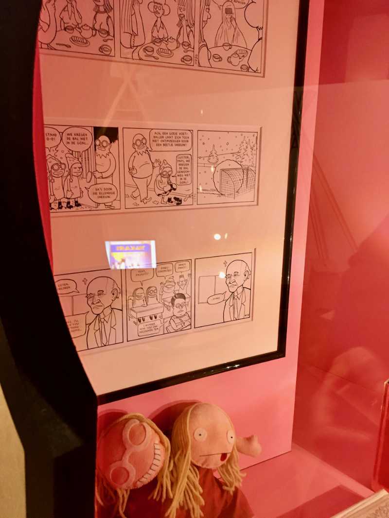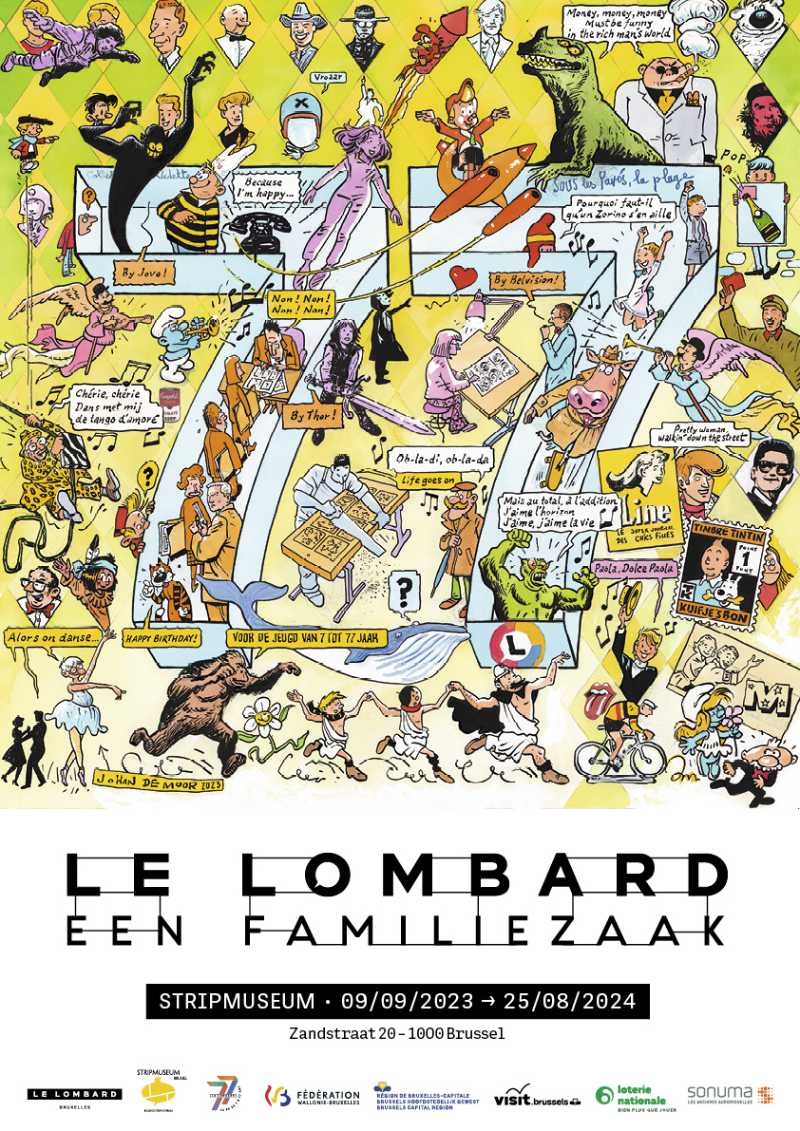 Éditions Le Lombard have existed for 77 years. "So what?" you might say. But for this comic book publisher, known for Thorgal, The Smurfs, Blake & Mortimer among others, 77 years is a symbolic anniversary. In days gone by, Le Lombard published the weekly Tintin, which bore the famous subtitle "for youngsters from 7 to 77 years old," hence. The terror twins Kinky & Cosy are also part of this comic book family and are currently shining in an impressive retrospective at the Belgian Comics Art Museum. It is an expo with a clever concept and an elegant execution in which you can discover their contrarian jokes through a large keyhole. Thanks to the inventive curator Thierry Bellefroid (in the picture with me)!