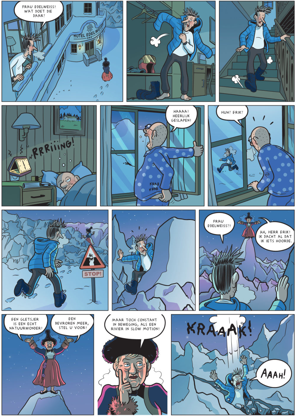 The Buurtpolitie team sneaks off for a week's ski holiday in Austria. They have booked a hotel more than 3,000 metres above sea level next to a glacier. What looked appealing on the website turns out to be an abandoned inn that is rumoured to have a curse. The previous manager was murdered there and the culprit was never found. Erik is immensely intrigued by the story. The high altitude making it impossible for him to fall asleep anyway, he makes all kinds of strange discoveries at night.