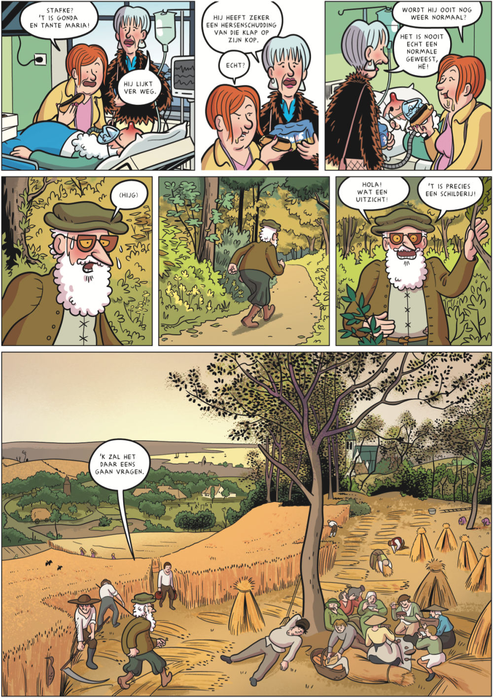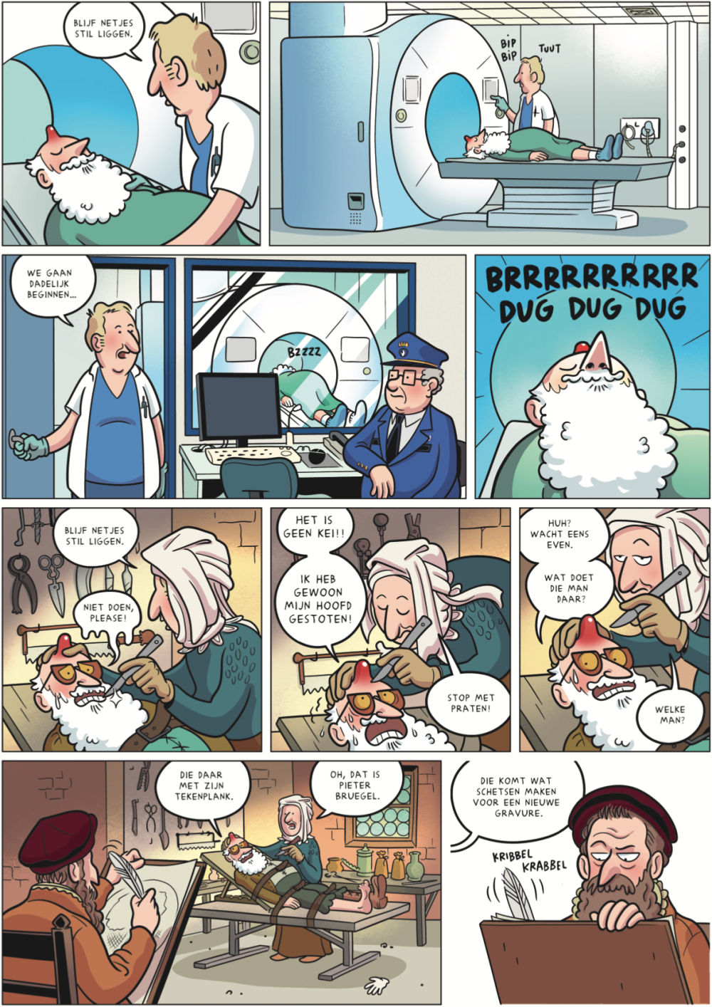 At the flea market, Stafke makes a unique find, an original engraving by Bruegel. His excitement is short-lived, because that same night his new acquisition is stolen during a brutal burglary. Stafke catches the culprit in the act and pays for it with a tap on the head that gives him a big bump and lands him in a coma. In his dreams, he is transported to the vibrant life of the sixteenth century, where he is determined to find the legendary Bruegel. In the present, the Buurtpolitie team begins a race against time to track down the art thief. The commissioner knows Stafke knows the culprit, but cannot question him while he is unconscious. Will Stafke awaken from his coma in time to reveal the secret, or will the unscrupulous thief return to take revenge on Stafke?